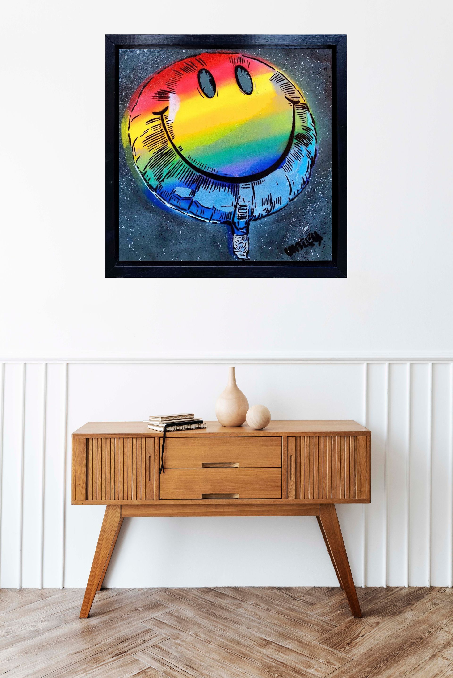a lot of the art that is created by unify has undertones of how much is thrown away on the planet and without a thought of where it is going to end up. the reloved series was born from this narrative and a want and need to show that art can be "reloved" and given a new lease of life. often found thrown in the corner of charity shops or on the streets, these artworks have been restored, refurbished, reloved and painted with unify's artwork bringing vibrancy and colour to them. you can find them listed in the reloved series page here on Unify's website to purchase. the virtual gallery above gives you a glimpse into the approximate size in relation to their surroundings.